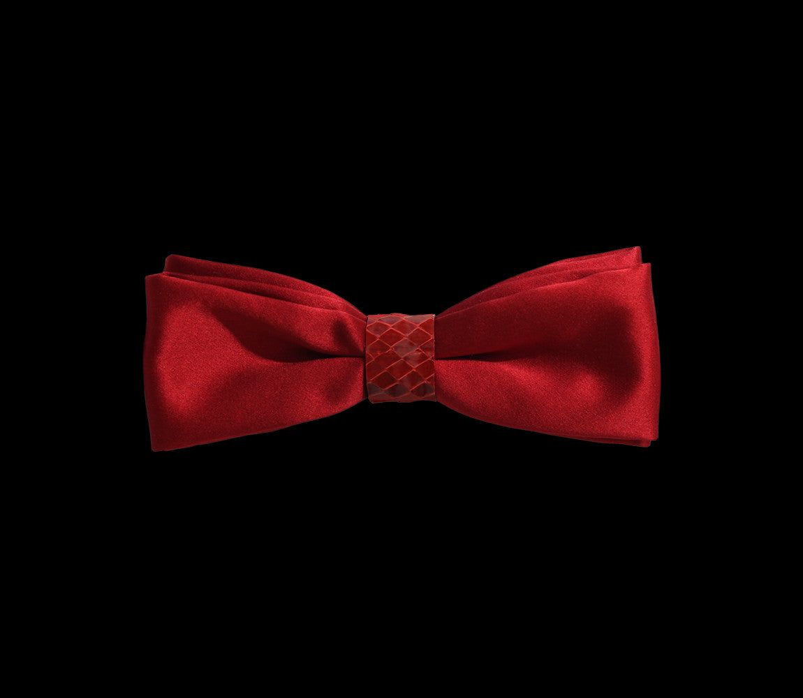 Satin bow tie in red with python detail. This red bow tie comes in a slim/batwing version. Luxurious pure and natural silk satin, not synthetic.